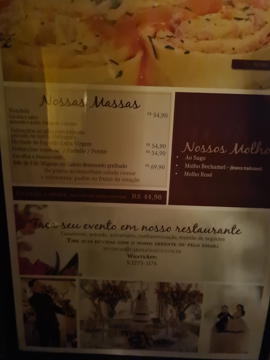 The ambiance is warm and inviting, complemented by attentive service that enhances your meal. With glowing reviews from patrons such as Gabriel Cordeiro, who highlighted both the food and service quality, Cabana Osasco establishes itself as a go-to spot for business lunches or special dinners. And, if you're in the mood for a delightful drink, don't miss their signature Caipirinha. This menu offers a true taste of Argentina, making every visit a memorable culinary journey.